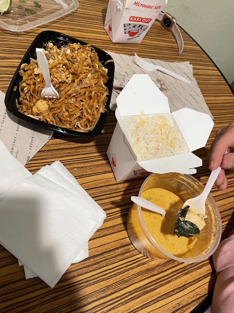 Missed lunch at work today and wanted to grab something quick in the area on the way home for dinner. I ordered the Basil Fried Rice w/ chicken to go- was ready in ten minutes and waiting for me when I got there. Initially I was a little miffed seeing my 'small' takeout container compared to the mountainous piles of food on diners plates inside. I get home and it's still piping hot, and they really use every square millimeter of those takeout containers. There was a LOT of food (I saved some for tomorrow), but beyond that, and more importantly- it was delicious! The cashews, basil, mint, jalapenos, curry paste, etc. added unexpected yet welcomed flavor profiles; a little surprise in every bite. The chicken was tender and juicy. I opted for a 3/5 in heat and it was spicy (for someone who likes spicy food), but not overwhelming. I love supporting local businesses and don't know how this place flew under my radar for so long. Really pleased and satisfied and will be returning regularly. Thanks!